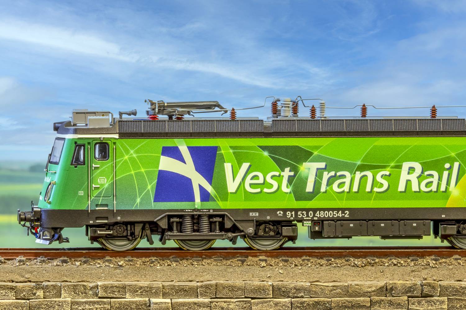 Locomotiva electrica 480 054-2 Vest trans rail, interfata digitala Plux 22. Model echipat cu iluminare la boghiuri, cabine si aparatura de bord. Raza minima 450 mm.