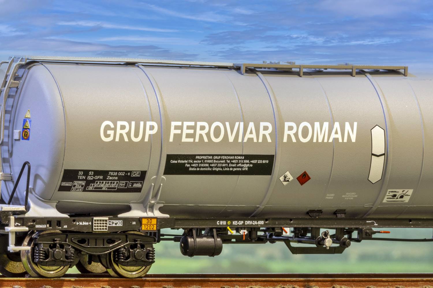 Vagon cisterna tip Zacns al companiei GFR cu nr 33 TEN 53 RO-GFR 7838 002-6. Se livreaza cuple similare cu Roco 40270. Vagon realizat in cooperare cu Igra Modell, serie limitata si exclusiva pentru HGD Hobby Center.
