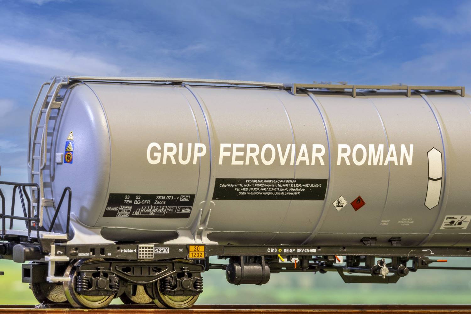 Vagon cisterna tip Zacns al companiei GFR cu nr 33 TEN 53 RO-GFR 7838 073-7. Se livreaza cuple similare cu Roco 40270. Vagon realizat in cooperare cu Igra Modell, serie limitata si exclusiva pentru HGD Hobby Center.